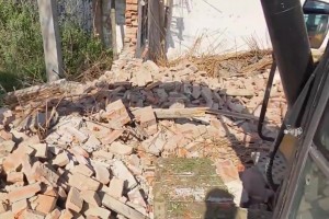 男子开挖机给东家扒房子,东家却不告诉自己旁边房子还有人