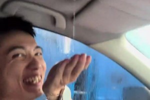 男子下雨天开车出去,结果外边下大雨,车内下小雨