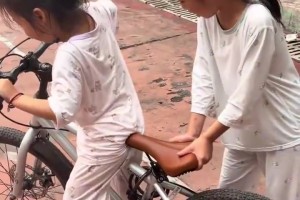 姐姐教妹妹骑自行车,一个敢教、一个敢上,没想到妹妹一蹬就学会